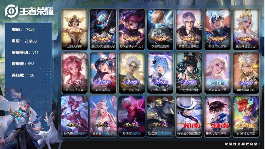 安卓QQ/绝世王者/465皮肤/128英雄/4典藏/0珍品无双/2无双...¥3000.00